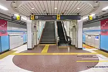 The station has an underground island platform serving two tracks. The platforms are equipped with waist-height platform edge doors.