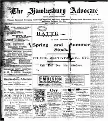 The Hawkesbury Advocate was published from 1899 - 1900. Rod and Wendy Gow created an index to Hawkesbury local newspapers, including Hawkesbury advocate newspaper index 1899 to 1900 / GOW.[1]