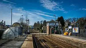 Haydon Bridge is a railway station on the Tyne Valley Line, which runs between Newcastle and Carlisle via Hexham. The station, situated 29 miles 68 chains (29.8 mi; 48.0 km) west of Newcastle, serves the village of Haydon Bridge in Northumberland, England. It is owned by Network Rail and managed by Northern Trains.
