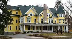 Hazelhurst is a historic house located at 150 East Genesee Street in Skaneateles, New York. It was originally a small summer home built for William Loney about 1866, and enlarged and renovated in 1904. It had an extensive lawn stretching down to Skaneateles Lake, which was later split up into 30 separate building lots that now share a common lake access. Hazelhurst is a three-story, irregular plan, Queen Anne style balloon frame dwelling. It features a wraparound porch with Ionic order columns, multiple gabled roof, porte cochere, and corner tower with conical roof.[2]: 3–4, 6 [3] The mansion is now used as a 14-bedroom home for the elderly called "The Athenaeum".[4]