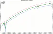 By 2010, there were three malaria regions in Indonesia: Nusa Tenggara Barat with 20 cases per 1,000 citizens, Nusa Tenggara Timur with 20–50, and Maluku and Papua with more than 50 cases per thousand. The medium endemicity in Sumatra, Kalimantan and Sulawesi, whereas low endemicity is in Java and Bali which almost 100 percent of malaria cases have been confirmed clear.[33] At 1990 malaria average incidence was 4.96 per 1,000 and declined to 1.96 per 1000 at 2010. The government is targeting to rid the country of malaria by 2030 and elimination means to achieve less than 1 incidence per 1,000 people.[34]