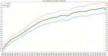 The Human Rights Measurement Initiative[3] finds that Malaysia is fulfilling 74.9% of what it should be fulfilling for the right to health based on its level of income.[4] When looking at the right to health with respect to children, Malaysia achieves 96.8% of what is expected based on its current income.[4] In regards to the right to health amongst the adult population, the country achieves only 86.4% of what is expected based on the nation's level of income.[4] Malaysia falls into the "very bad" category when evaluating the right to reproductive health because the nation is fulfilling only 41.6% of what the nation is expected to achieve based on the resources (income) it has available.[4]