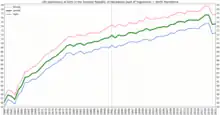The Health in North Macedonia is improving. The Macedonian life expectancy in 2016 was 74 for men and 78 for women. In 2015 it was estimated that 11.44% of the Macedonian population had diabetes, costing about $403 per person per year.[1] In 2015 it had the fourth highest rate of death from non-communicable diseases in Europe (637 per 100,000).[2]