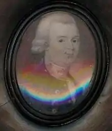 Ebony-framed miniature portrait with rear hand-written label "Luncarty. Hector Turnbull, grandfather of Mr Geo Turnbull. Died 1788 aged [?]65 years".
