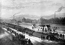 The station opened with the inauguration of the Midland Railway's main line between Chesterfield and Sheffield on 1 February 1870.[1] This new station of 1870 was designed by the company architect John Holloway Sanders.[2] It was built on an embankment between the A61, London Road South and the River Sheaf. During construction both the road and river were diverted to create space for the station and sidings.