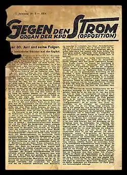 Cover of Gegen den Strom, official publication of the "Brandlerite" Communist Party of Germany (Opposition).