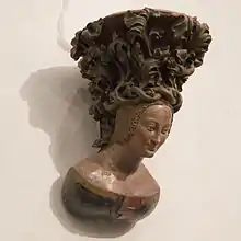 A bust kept at the Schnütgen Museum is attributed to Heinrich:[5][2] it depicts a woman, bearing the Parlers seal (1378), representing Eve. This bust undoubtedly comes from Cologne Cathedral.[6] The bust is carved in sandstone, like the 34 prophets and saints of the St. Peter's portal. The style of Heinrich influenced a sculptural tendency of "soft style" of this era,[5] and possibly foreshadowed the bohemian style of the "Beautiful Madonnas" of the 1380s,[5] such as the Beautiful Madonna of Toruń.