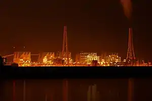 Hekinan Thermal Power Station (碧南火力発電所, Hekinan Karyoku Hatsudensho) is a large thermal power station operated by JERA in the city of Hekinan, Aichi, Japan. The facility is located the head of the Chita Peninsula and is the largest coal-fired power station in Japan.[1][2] The plant is estimated to have been one of the ten most carbon polluting coal-fired power plants in the world in 2018, at 26.64 million tons of carbon dioxide, and relative emissions are estimated at 1.394 kg per kWh.[3]