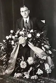 Johan Wilhelm Henri van Wermeskerken (22 March 1882 - 7 June 1937) was a Dutch playwright, novelist and journalist. He is considered the most prominent comedic playwright in the literature of the Dutch East Indies. [1] His greatest successes were plays Tropenadel (1916) and Suikerfreule (1917), both of which he later adapted into novels. Despite criticism from literary figures such as Rob Nieuwenhuys[2] and E. du Perron,[3][4] Van Wermeskerken's short story collection Langs den gordel van smaragd (1923) was hailed as his masterpiece.[2] His work was part of the literature event in the art competition at the 1928 Summer Olympics.[5]