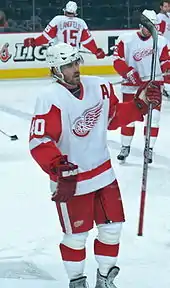 Henrik Zetterberg[1][2] (pronounced [ˈhɛ̌nːrɪk ˈsɛ̂tːɛrˌbærj]; born 9 October 1980) is a Swedish former professional ice hockey forward. He played his entire National Hockey League career, from 2002 to 2018, with the Detroit Red Wings of the National Hockey League (NHL), for whom he would serve as captain for his final six seasons.