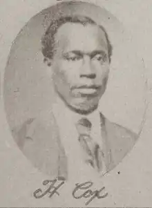 Henry Cox (December 1832 - ?) was an American shoemaker and politician, who served as a state legislator in Virginia.[1] He served several terms in the Virginia House of Delegates.[2] He represented Dinwiddie County.[3] He married and had two daughters.[2]