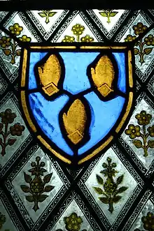 Arms of Fane of Fulbeck (as Fane, Earls of Westmorland) in a stained glass window in Fulbeck Church, Lincolnshire