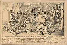 Satirical print from 1821 showing supporters of Queen Caroline: Henry Hood is the figure on the extreme right[25]