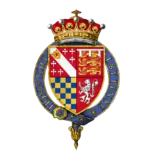 The arms for which Howard was attainted (Edward the Confessor's attributed arms are in the fifth quarter with a label of three points plain Argent).[14]