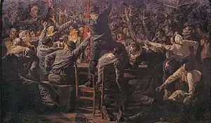 One of his most famous works is The Golden Canvass of Flanders ('Het Gulden Doek van Vlaanderen') in which Luyten depicts a fictional meeting of the one hundred odd people who in his opinion played a key role in Flemish history and the Flemish movement. Catholic or liberal, activist or anti-German, alive or already deceased, he portrayed all against the backdrop of Rubens' Descent from the Cross. He worked on the painting for more than 10 years. It was donated to the IJzertoren (Yser Tower) where it is kept in the museum.[3]