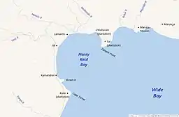 Henry Reid Bay (sometimes Henry Reed Bay) is known locally as Homhovulu Harbor.[1] It is a bay on the southerly coast of New Britain that opens into Wide Bay. It forms the furthest penetration of Wide Bay and is defined by Zungen Point on its north shore and Cape Turner on its southern shore. Wide Bay and Open Bay, on the northerly coast, form the isthmus separating the Gazelle Peninsula from the western part of the island.