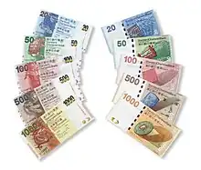 - ↑ Liu, Alfred; Wong, Adele (September 9, 2009). "New $150 notes are real bang for the buck". The Standard. Archived from the original on 17 September 2009. Retrieved 11 February 2010.
