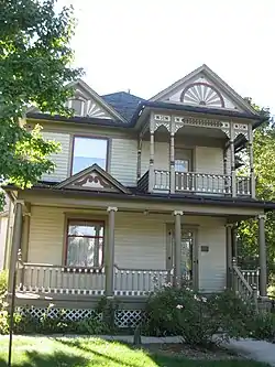 The Henry T. and Emilie (Wiese) Henryson House, also known as the Bartlett Museum, is a historic building located in Story City, Iowa, United States. It is a fine example of the spindlework subtype of the Queen Anne style, and the best remaining example left in the community.[2] It also reflects the growth and development of Story City by Norwegian immigrants in the early 20th century. This two-story frame house was built in 1903. It features an asymmetrical facade and a full width front porch on the main floor with second-story porch above the main entrance.