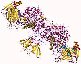 Heparosan-N-sulfate-glucuronate 5-epimerase (EC 5.1.3.17, heparosan epimerase, heparosan-N-sulfate-D-glucuronosyl 5-epimerase, C-5 uronosyl epimerase, polyglucuronate epimerase, D-glucuronyl C-5 epimerase, poly[(1,4)-beta-D-glucuronosyl-(1,4)-N-sulfo-alpha-D-glucosaminyl] glucurono-5-epimerase) is an enzyme with systematic name poly((1->4)-beta-D-glucuronosyl-(1->4)-N-sulfo-alpha-D-glucosaminyl) glucurono-5-epimerase.[1] This enzyme catalyses the following chemical reaction