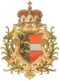Middle Coat of arms of the Austrian part of the Empire in 1915. It shows as a center shield (inescutcheon) the personal arms of Habsburg-Lorraine over the arms of dominions of the Habsburg lands. It usually had the personal arms of Habsburg-Lorraine in the center.