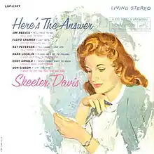 Here's the Answer is the second studio album by American country artist Skeeter Davis. The album was released in January 1961 on RCA Victor Records and was produced by Chet Atkins. The album consisted of cover versions of hit singles by country artists and answer songs to the hits.