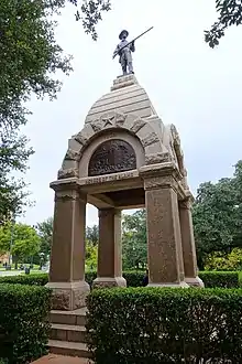 The Heroes of the Alamo Monument is an outdoor memorial commemorating those who fought and died during the Battle of the Alamo, installed on the Texas State Capitol grounds, in Austin, Texas, United States. It was designed by J.S. Clark, sculpted by Crohl Smith, and erected in 1891.[1] The monument features a Texas Sunset Red Granite base topped by a bronze statue of a Texan carrying a muzzle-loading rifle. Among the names inscribed in the base's supports are James Bowie, David Crockett, and William B. Travis.[1]
