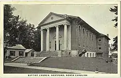 Hertford Historic District is a national historic district located at Hertford, Perquimans County, North Carolina. The district encompasses 219 contributing buildings, 2 contributing sites, 1 contributing structure, and 1 contributing object in the central business district and surrounding residential sections of Hertford. The district developed between about 1759 and 1948, and includes notable examples of Federal, Greek Revival, and Gothic Revival style architecture. Located in the district are the separately listed Perquimans County Courthouse and Church of the Holy Trinity. Other notable buildings include the Creecy-Skinner-Whedbee House (c. 1779), Edward Wood House (c. 1818), Matthews-Jacocks House (c. 1824), Temperance Hall (1851), Matthew H. White House (c. 1893), Dr. Thomas S. McMullan House (1905), Thomas Nixon House (c. 1917), William M. Divers House (1924), W.R. Shannonhouse Building (1895), Darden Department Store (c. 1909), Farmers National Bank of Hertford (1916), State Theatre (1937), Old Hertford Post Office (1915), Hertford Baptist Church (1854), and Hertford United Methodist Church (1901).[2]