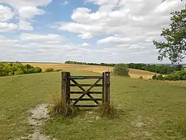 ![]() Gate with Hertfordshire Way sign, Therfield Heath | |