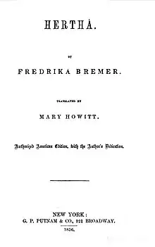 Hertha, fully New Sketches of Everyday Life: Hertha, or, A Soul's History: A Sketch from Real Life (Swedish: Nya Teckningar ur Hvardagslifvet: Hertha, eller En själs historia: Teckning ur det verkliga livet) is a Swedish novel by Fredrika Bremer, first published in 1856.