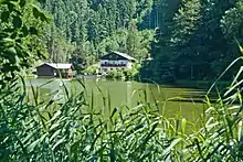 The Herzsee is a lake near the village center of Aldrans in the Tyrol region of Austria, and serves mainly for fish breeding.[1][2] Formerly the Lake was opened to the public for swimming. The lake is covered in a wooded environment on a round travel route to Ampass or Sistrans. Its length is 200 m; its width is 50 m.