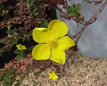 Hibbertia cunninghamii is a species of flowering plant in the family Dilleniaceae and is endemic to the south-west of Western Australia. It is a shrub with a sprawling, straggling or ascending habit and typically grows to a height of 0.2–0.7 m (7.9 in – 2 ft 3.6 in). It blooms between August and December producing yellow flowers.[2]