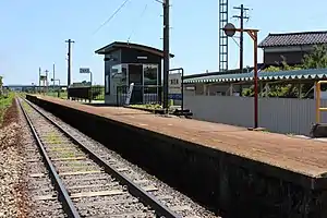 The station has a single side platform serving one bi-directional track. The station is unattended.