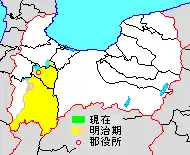 Map showing original extent of Higashitonami District in Toyama Prefecture: