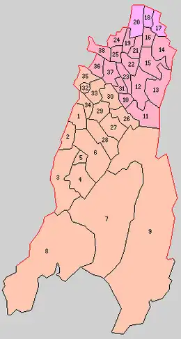 Prior to its dissolution, the district consisted of four towns and four villages: