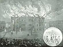 The school building in Peel Street on fire, 1890