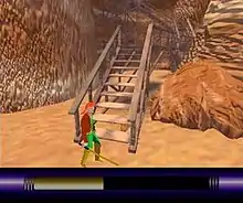 All of the in-game artwork was pre-rendered with 3D Studio, based on the original designs by Gaumont and displayed using high color format, while the three-dimensional character models such as Quentin himself consist of 300 polygons.[4][5][6][7][11] It also makes use of the various hardware features found within the Jaguar such as Z-buffering, which causes the animated characters to be composited correctly within the pre-rendered artwork.[4][5][6][7] The motion capture process for character animation was handled at Lore Design's then-recently built studio, which involved the filming of actors performing moves with reflective markers attached on determined parts of their bodies in order to record their movements that would allow characters to act realistically, while a custom tool set capable of converting the data into information that the hardware could read to display the actions on-screen was used to aid in said process.[4][5][6][7]