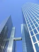 Highlight Towers is a twin tower office skyscraper complex completed in 2004 in Munich, Germany, planned by architects Murphy/Jahn of Chicago. Tower I is 126 m (413 ft) tall with 33 storeys, and Tower II is 113 m (371 ft) tall with 28 storeys, which make them among the highest buildings in the city. The towers are joined by two skyways made of glass and steel. Also in the complex are two low-rise buildings between the twin towers, that serve as a hotel and additional office space. Overall, the facility offers approximately 73,836 m2 (794,760 sq ft) of office space.