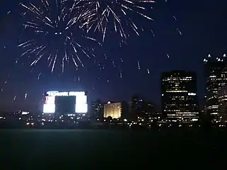 Highmark Stadium is a 5,000-seat soccer-specific stadium in Pittsburgh's Station Square which is home to Pittsburgh Riverhounds SC of the USL Championship and the Pittsburgh Thunderbirds of the American Ultimate Disc League. The stadium was also home to the Pittsburgh Rebellion women's football team for 2017. Three local colleges use the stadium for soccer, lacrosse and rugby, and six different local high schools will use the field for soccer and lacrosse.[6] The $10.2 million project began with the demolishing and excavating of the former Trib Total Media Amphitheatre, building foundations for the scoreboard, light poles and grading foundations for the grandstands as well as the installation of underground utilities. The field surface is FIFA 2-star certified artificial turf, the highest rating that an artificial surface can achieve, one of only six fields in the country to earn that rating.[6][7] Other fields to earn this rating in the United States include: Providence Park, CenturyLink Field, and Gillette Stadium, all of which house Major League Soccer franchises.[8][9][10]