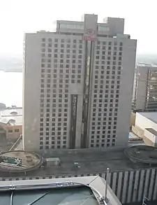 Hilton New Orleans Riverside, located at 2 Poydras Street in the Central Business District of New Orleans, Louisiana, is a 29-story, 341 feet (104 m)-tall skyscraper hotel. The hotel is the city's largest hotel, containing 1,700 rooms. The hotel is owned by Park Hotels & Resorts and is managed by Hilton Worldwide as part of the Hilton Hotels & Resorts chain. A portion of the building complex overlooks the Mississippi River front. The building is connected via an enclosed pedestrian walkway with the adjacent Outlet Collection at Riverwalk, and is located next to the Ernest N. Morial Convention Center.