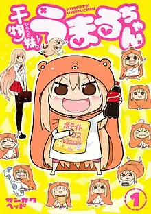 Himouto! Umaru-chan (Japanese: 干物妹!うまるちゃん, Hepburn: Himōto! Umaru-chan)[lower-alpha 1] is a Japanese manga series written and illustrated by Sankakuhead. After two one-shot chapters published in Shueisha's seinen manga magazine Miracle Jump in 2012, the manga was serialized in Weekly Young Jump from March 2013 to November 2017, with its chapters collected in 12 tankōbon volumes. A sequel manga titled, Himouto! Umaru-chan G, was published in the same magazine from November 2017 to April 2018, with its chapters collected in a single volume. An anime television series adaptation aired in 2015. A second season titled Himouto! Umaru-chan R aired from October to December 2017.