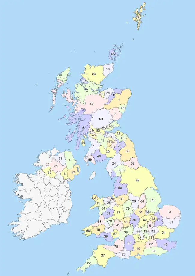 Historic counties of the United Kingdom (detached parts not shown separately)