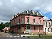Several buildings were erected c.1840/41, including the first Doncaster Inn (1841–1907). The economic depression of the early 1840s slowed development for a few years but gradually a business centre developed along Mackellar Street adjacent to Monkittee Creek and on the north-facing slope of Wallace Street. Proximity to creek water was obviously an incentive to spread along Mackellar Street as was, apparently, the disincentive of ascending the "Jew's Hill" (Benjamin Moses is shown as the owner of the block on the south east corner of Mackellar and Wallace streets). Surveyor Larmer purchased land and built the Royal Hotel c.1845 (the present Museum). In Mackellar Street the three-storeyed Albert Buildings, later converted to a steam-driven flourmill, were used as shops by Hendricks and Jacobs ( still standing). On the corner of Mackellar and Wallace Streets was the Post Office and store (still standing). A District Council had been established in 1843.[1]