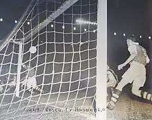 In May 1949, the team faced the English club Arsenal, in a highly anticipated match in the capital. Arsenal had been the English champions the previous year, and it was believed at the time that they were playing a level of football not yet reached by Brazilian teams. The results on Brazilian soil seemed to confirm this: there were three matches, with two London victories and a draw, one of these victories being a resounding 5–1 defeat of Fluminense.[41] The match was surrounded by expectations, due to the importance of Arsenal — the newspaper O Globo even stated that the team had been "the greatest team that had ever visited Brazil",[41] while the newspaper A Noite stated that the London team was "the most famous team in the world"[42] — and for the fact that Vasco was considered the best team in Rio de Janeiro, and one of the best in Brazil.[43] The dispute, which took place at Estádio São Januário, was attended by the Vice-President of the Republic, Nereu Ramos, at the time President-in-Office,[42] as well as the Ambassador of Great Britain,[43] and an estimated audience of 60,000 people, an unofficial record for the stadium to this day.[44] According to Jornal A Noite, "outside and inside the stadium reigned the confusion", with the stadium gates broken into.[42] The income obtained from the public was the highest recorded in Brazil and South America at the time.[43]