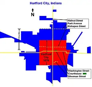 - ↑ "Hartford City, Indiana web site". Archived from the original on 2011-07-23. Retrieved 2010-02-12.