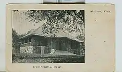Newtown's Booth Memorial public library was opened December 17, 1932 with a capacity for 25,000 volumes. The library is a posthumous gift of Mary Elizabeth Hawley and was named after her maternal grandfather, a doctor in town from 1820 until his death in 1871. Hawley's gift not only paid for construction of the building, but included a trust fund of about $250,000 which resulted in the town not financing the library until the 1980s. The library building was considered one of the most modern libraries of its time. Not only fireproof, it was furnished with cork floors and acoustic ceiling tiles to deaden sound, and had a built-in humidifying unit and a centralized vacuum cleaner. In January 1998 an addition to the rear of the building was completed and officially opened, doubling the available floor space.[4]
