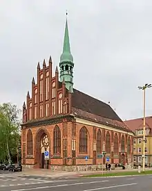 Szczecin was held by Denmark until 1235, when it fell under the suzerainty of the multi-ethnic Holy Roman Empire.[4] In the second half of the 12th century, a group of German tradesmen (from various parts of the Holy Roman Empire) settled in the city around St. Jacob's Church, which was founded by Beringer, a trader from Bamberg, and consecrated in 1187. For centuries the dukes invited German settlers to colonize their land and to found towns and villages (see Ostsiedlung). Duke Barnim of Pomerania granted a local government charter to a local community in 1237, separating the Germans from the Slavic majority community settled around the St. Nicholas Church (in the neighborhoods of Chyzin, Uber-Wiken, and Unter-Wiken). Barnim granted the city Magdeburg rights in 1243. In 1277 the city purchased the nearby villages, present-day districts, Krzekowo and Osów.[5] In 1278 Szczecin, along with several other cities, was exempted by King Eric V of Denmark from customs duties for a fair organized in Zealand, Denmark.[5] This is the first case of the city's connections with the Hanseatic League.[5] Around that time the major ethnic group of the city had become German, while the Slavic population decreased.
