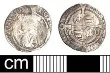 Henry's first coinage, to 1526, resembled that of his father and still used his father's portrait. With higher bullion prices on the continent, the weight of the silver coins was reduced again. Pennies were minted at the London, Canterbury, and Durham mints. With the reformation starting in the 1530s, the principal effect as far as the coinage was concerned was the closure of the ecclesiastical mints of Canterbury, Durham and York — in future all mints would be Royal mints, under the control of the crown who would consequently get all the revenue. The second coinage, of 1526–1544 had a completely different inscription, H.D.G. ROSA SIE SPIA — Henry by the grace of God a rose without a thorn. At this time the pound standard for mintage was changed from the local Tower pound to the internationally known troy pound; therefore, the value of a pennyweight increased from 1.46 grams to 1.56 grams. The coins were minted at London, and the Canterbury, Durham and York ecclesiastical mints.