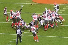 In 2009, the Bucs lost seven consecutive games including an international series game with New England in London. In week nine, the team defeated the Green Bay Packers 38–28 after a pair of touchdown passes by rookie quarterback Josh Freeman. Tampa Bay lost four consecutive games before they defeated Seattle in week 15 and New Orleans in week 16. The team lost its last game against Atlanta to finish 3–13.