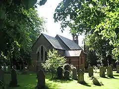 The village church, dedicated to St Luke, was built between 1869 and 1871. It is constructed of red brick in Early English style and consists of chancel, nave and south porch, and an alabaster reredos with evangelistic symbols.[2] In 1964 Pevsner reported a bellcote and lancet windows, and within the church a large early 19th-century painting of the Adoration of the Shepherds, "no doubt the altarpiece of an important church".[3]