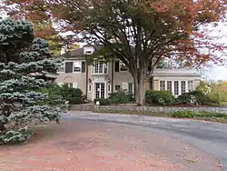 Holladay-Harrington House is a historic estate located at Greenville, New Castle County, Delaware. It was designed about 1927 by noted Delaware architect E. William Martin. It is a 2+12-story, three bays wide, stuccoed dwelling in the Colonial Revival style. The house has a hipped roof with wide overhanging eaves, projecting pavilion-like side sun porches, and French doors in all three first floor bays. The property includes a contributing garage, three small greenhouses, driveway pillars, fountain and concrete pool, retaining wall, metal fencing with grape design near greenhouses, and landscape features.[2]